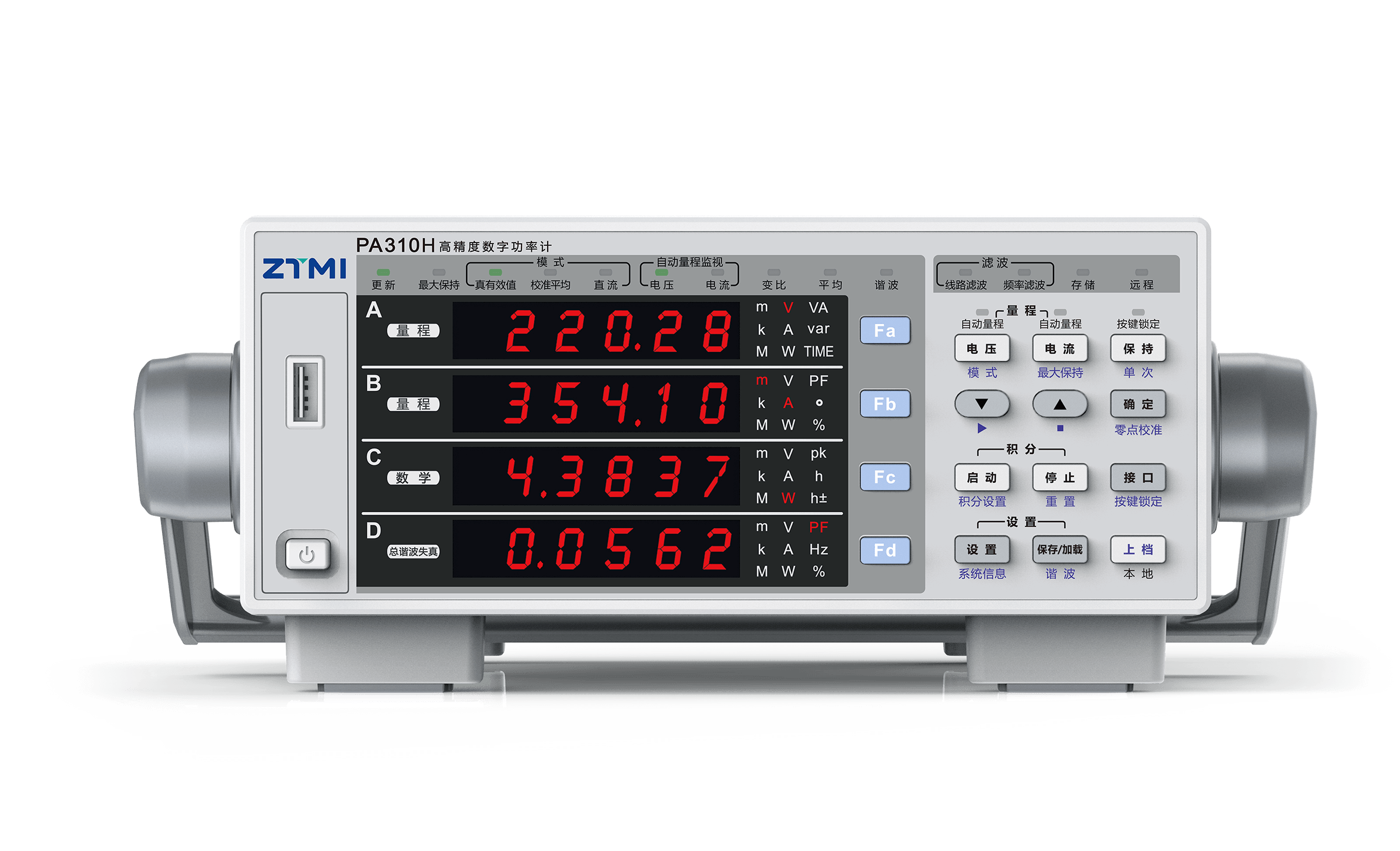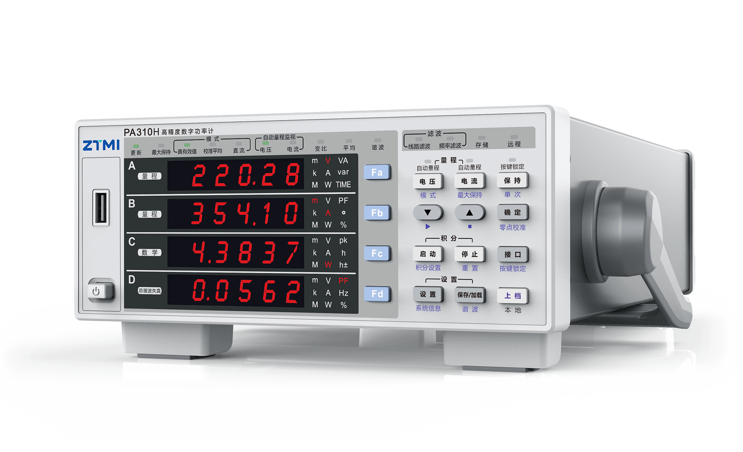 PA310H功率计配备单通道1000V/50A功率板卡,具备0.1%高精度与300KHz高带宽。