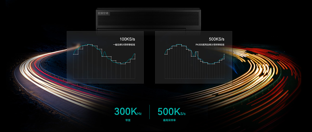 PA300系列数字功率计具有高至500KS/s的采样率和300KHz的带宽,能够测量高频信号,满足变频家电、开关电源等新技术产品的功耗测量。