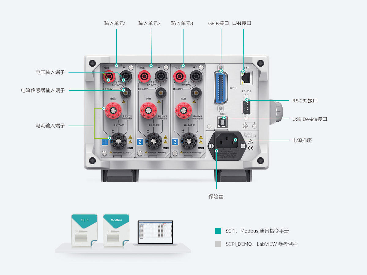 通讯接口是数据通讯的硬件基础。PA300系列功率计标配LAN、GPIB、RS-232和USB Device接口,兼容SCPI、Modbus两种通讯指令,保证了测试设备在自动化产线测试的系统集成中具备良好的兼容性。