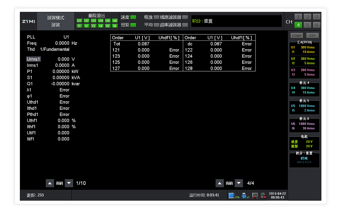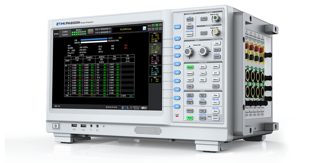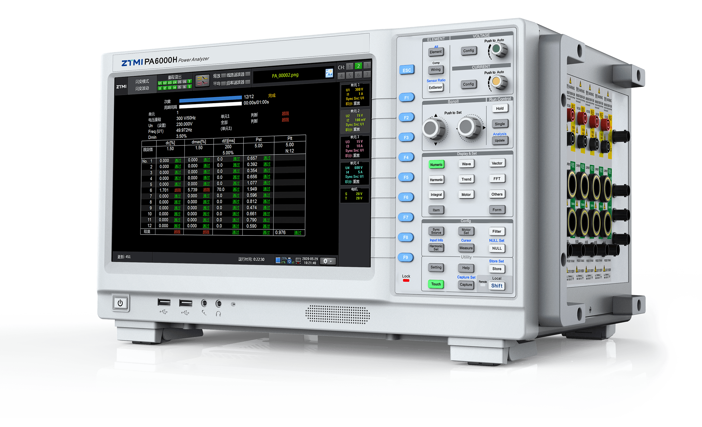 PA6000H功率分析仪带宽为DC/0.1Hz‐2MHz,由于采用了PLL源倍频技术,可实现速度更快、动态范围更广的谐波测量,在谐波模式下可实现对电压、电流基波、功率、相位、谐波成分和总谐波失真因数(THD)的准确测试。