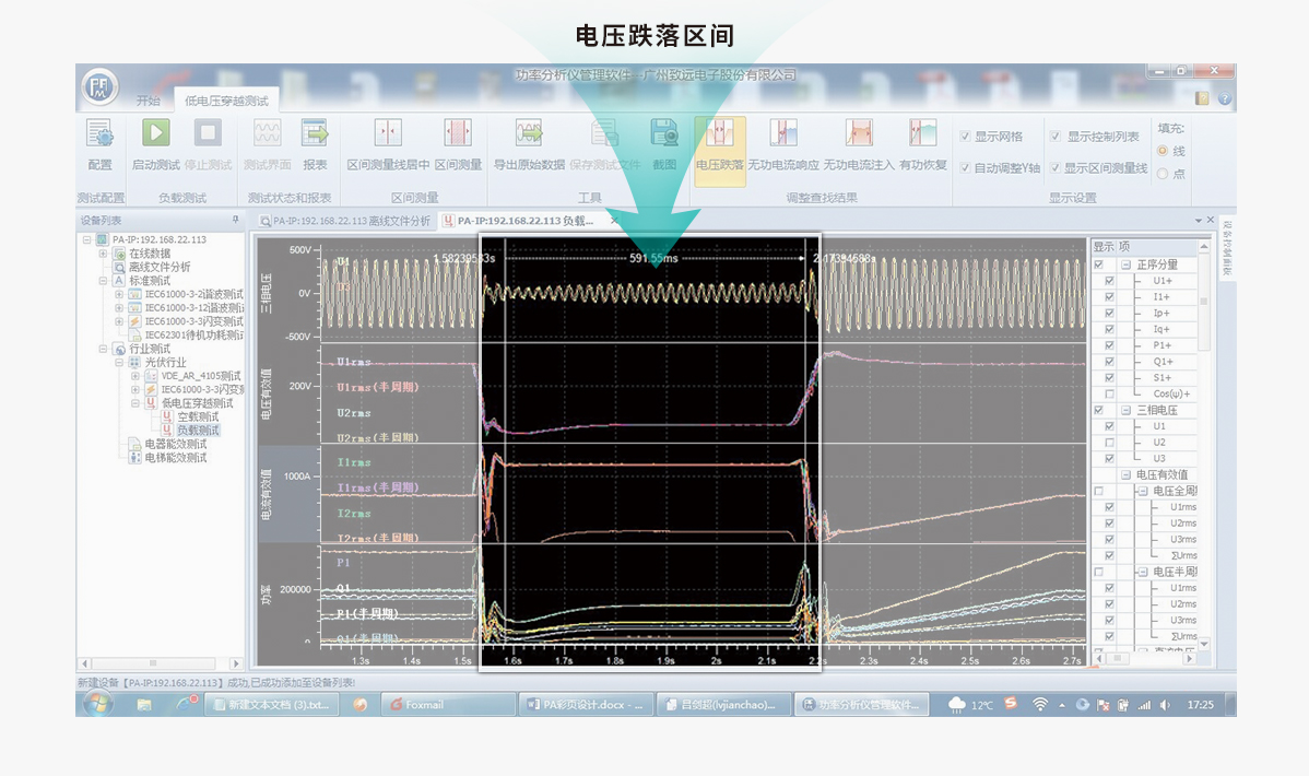 PA6000H功率分析仪配合自带的PAM软件,不仅可以解决光伏行业的低电压穿越测试问题,更是加入了风电行业的低电压穿越测试功能,可以帮助风电行业用户自主的对风电换流器进行低电压穿越测试。