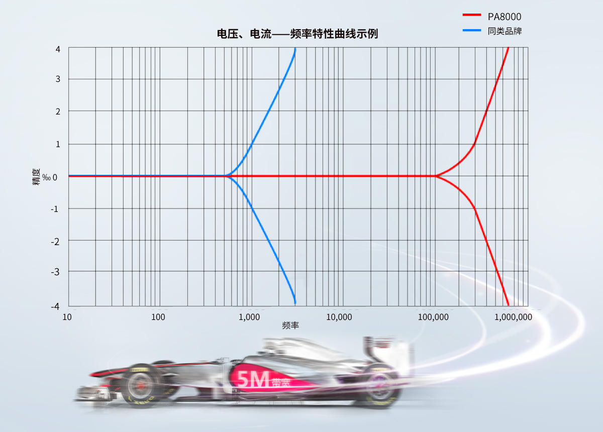 PA8000是行业内为数不多的一款具有0.01%精度,电流与电压频率带宽高达5MHz的功率分析仪,完全满足未来以SiC为代表的高速开关设备的功率测量。