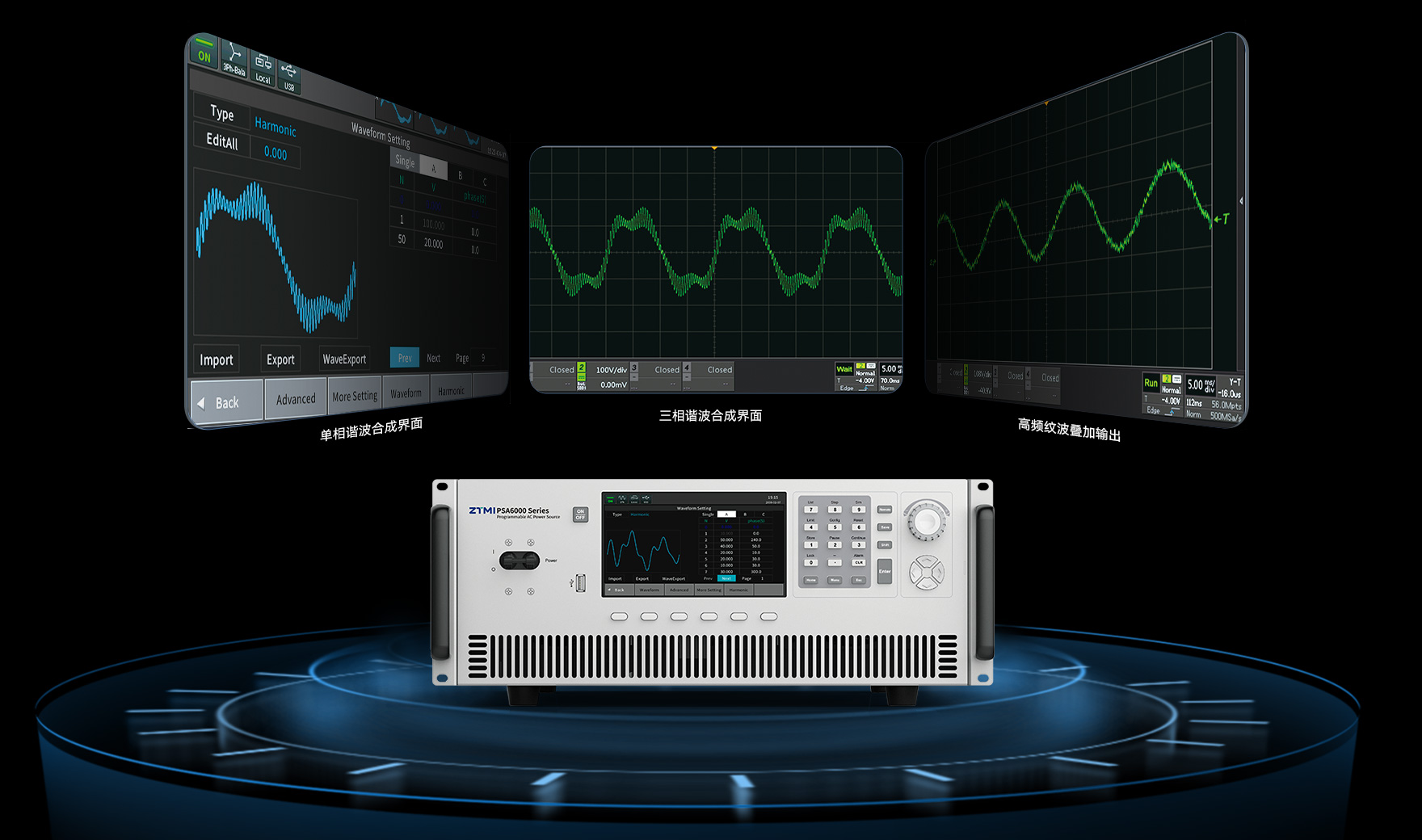 可输出0.1~10kHz的交流电压频率,更高的输出带宽能模拟高达50次的谐波,且能模拟更复杂的电网异常波动,如纹波叠加、波形合成等,可实现对设备更全面的测试。