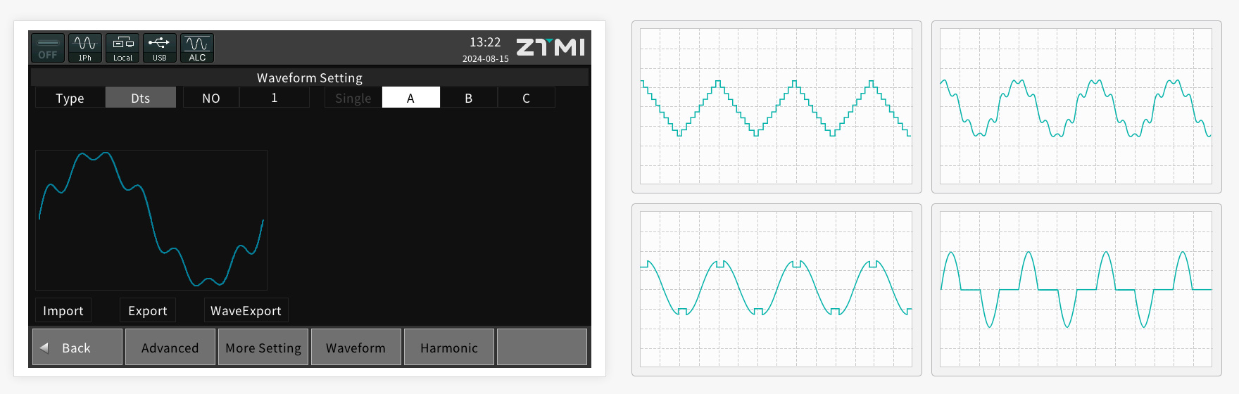 内置波形库含40余种常用测试波形,便捷调用,并可添加自定义波形,可模拟各类偶发异常电网情况。