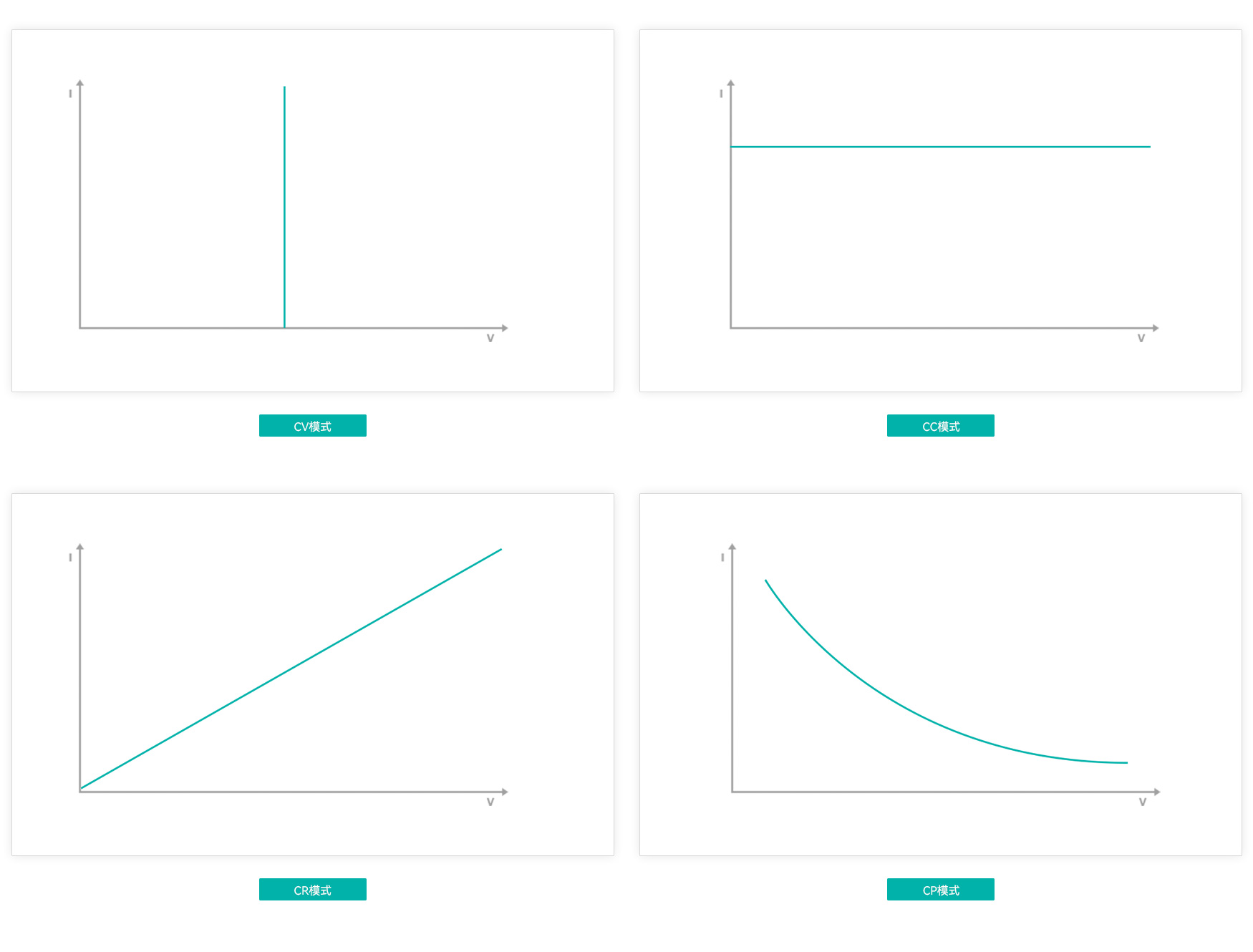 PSD8000 系列支持常规如 CC、CV、CR、CP 输出模式,以及多类型模式组合,如 CC+CV、CC+CR、CV+CC+CR+CP 等,可满足各类被测物的测试需求。