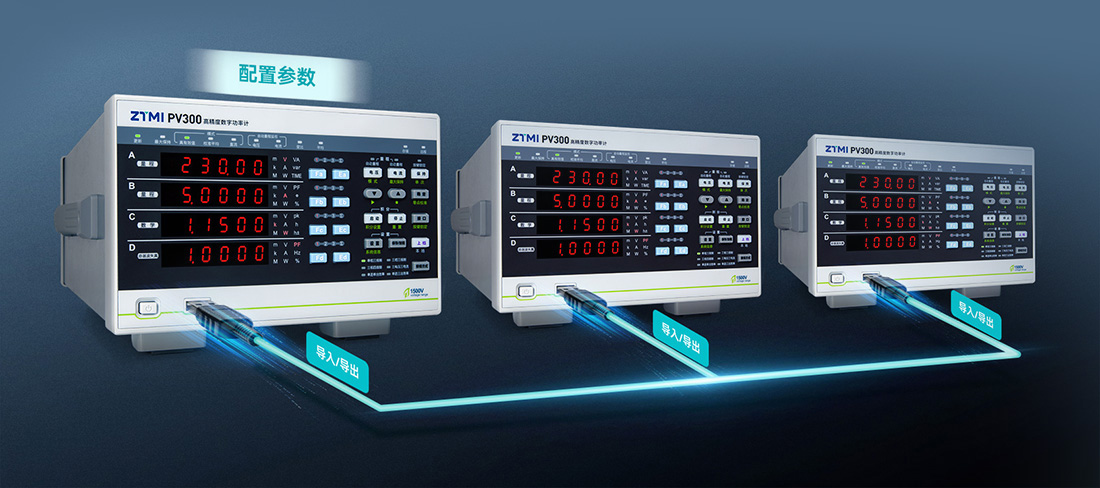PV300 功率计标配USB-Host接口,支持参数配置的导入导出功能,可使用U盘等外部存储器快速复制参数配置,提高效率的同时保证参数配置的一致性,减少重复设置出错的可能性,提供更加可靠的测量结果。
