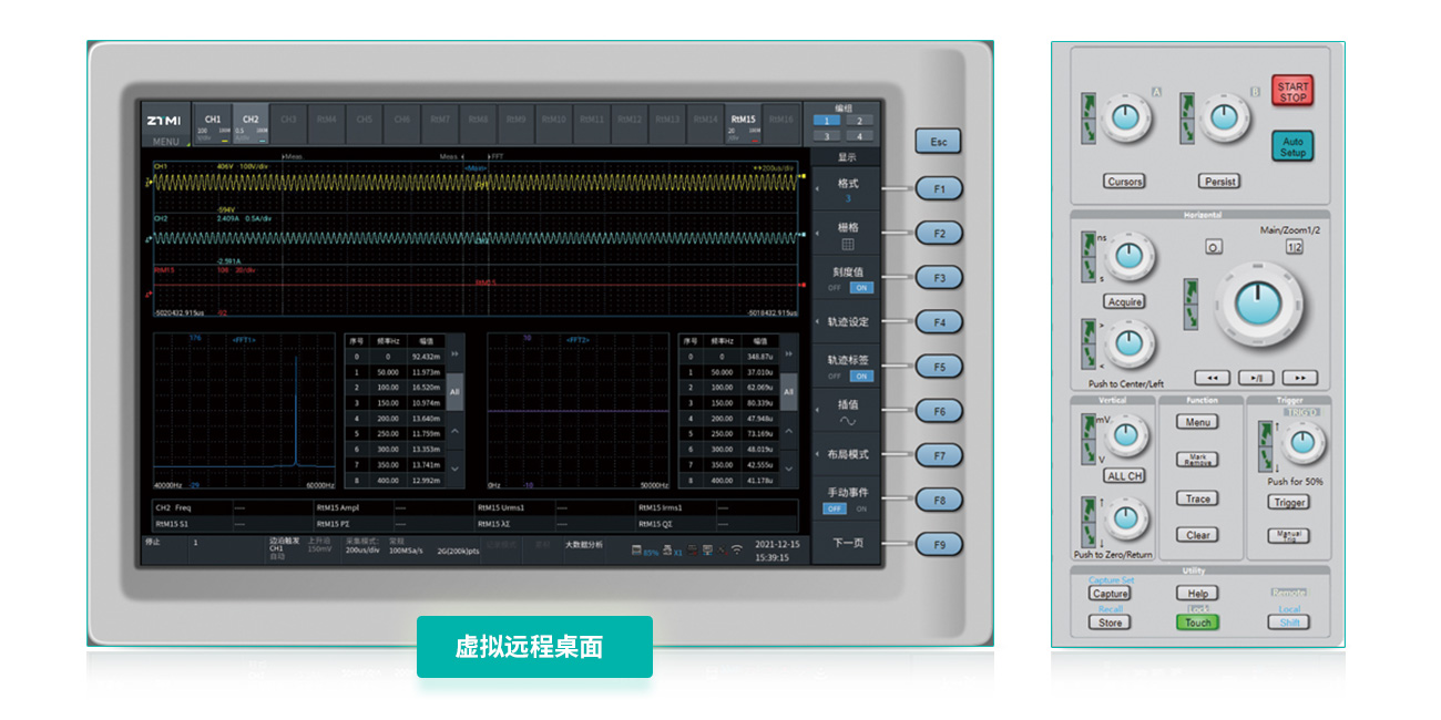 为了解决仪器不在身边需要远程读取数据的难题,我们开发了虚拟远程桌面和FTP功能,只需要将ZDL3000示波记录仪接入局域网,用户就可以通过上位机软件打开虚拟界面对ZDL3000进行实时控制,同时用户依然可以通过FTP对ZDL3000中的波形文件进行读取,此速度最快达到500M/s,是通过U盘读取数据的100倍。