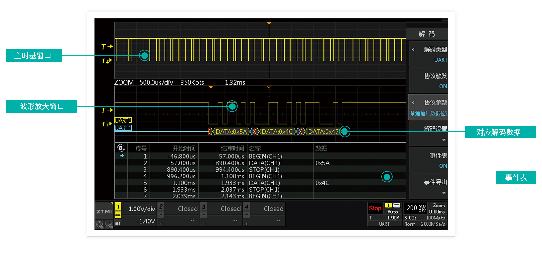ZDS2024C示波器免费标配了21种协议解码。机器自动解码相比传统手动解码能够实现更加的准确高效,更多的协议类型,更快的解析速度,更全的数据报告,帮助工程师迅速便捷的实现数字信号分析。