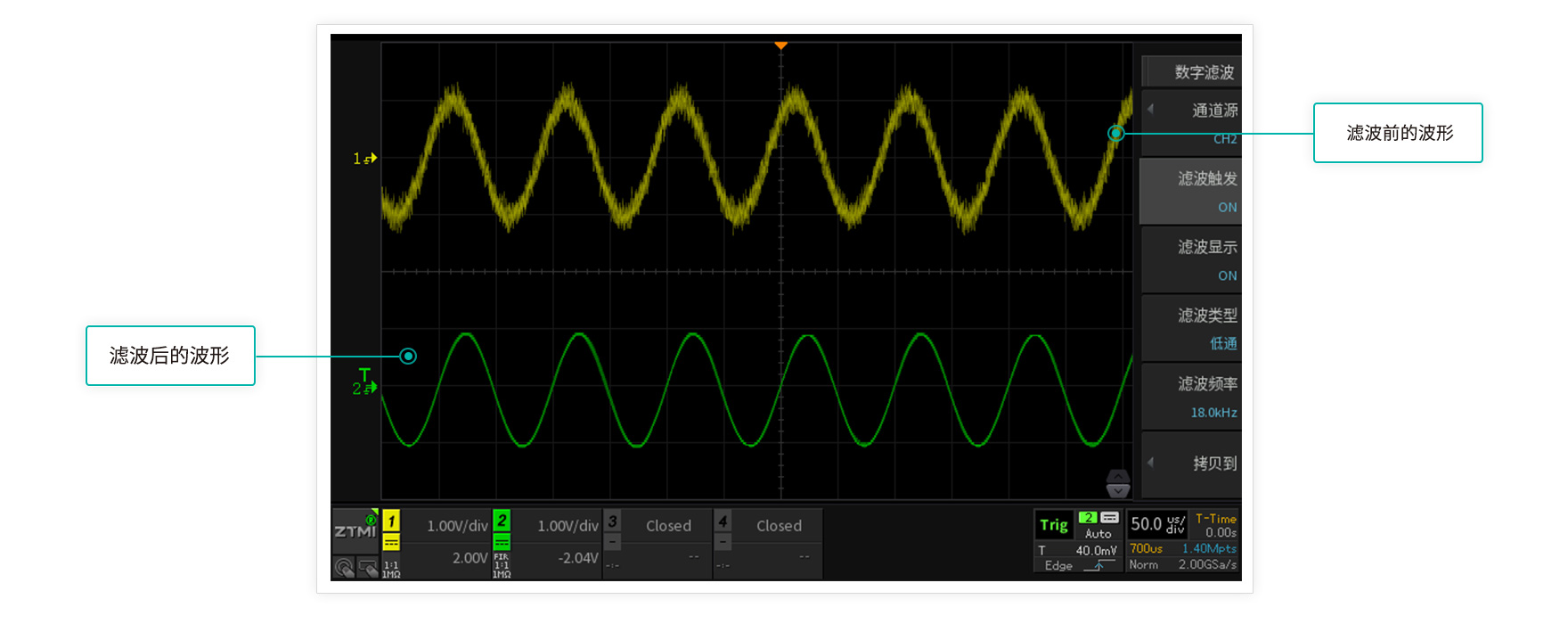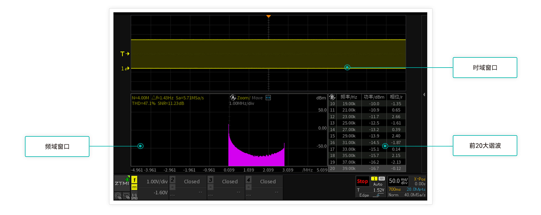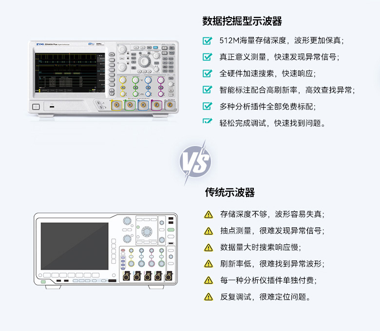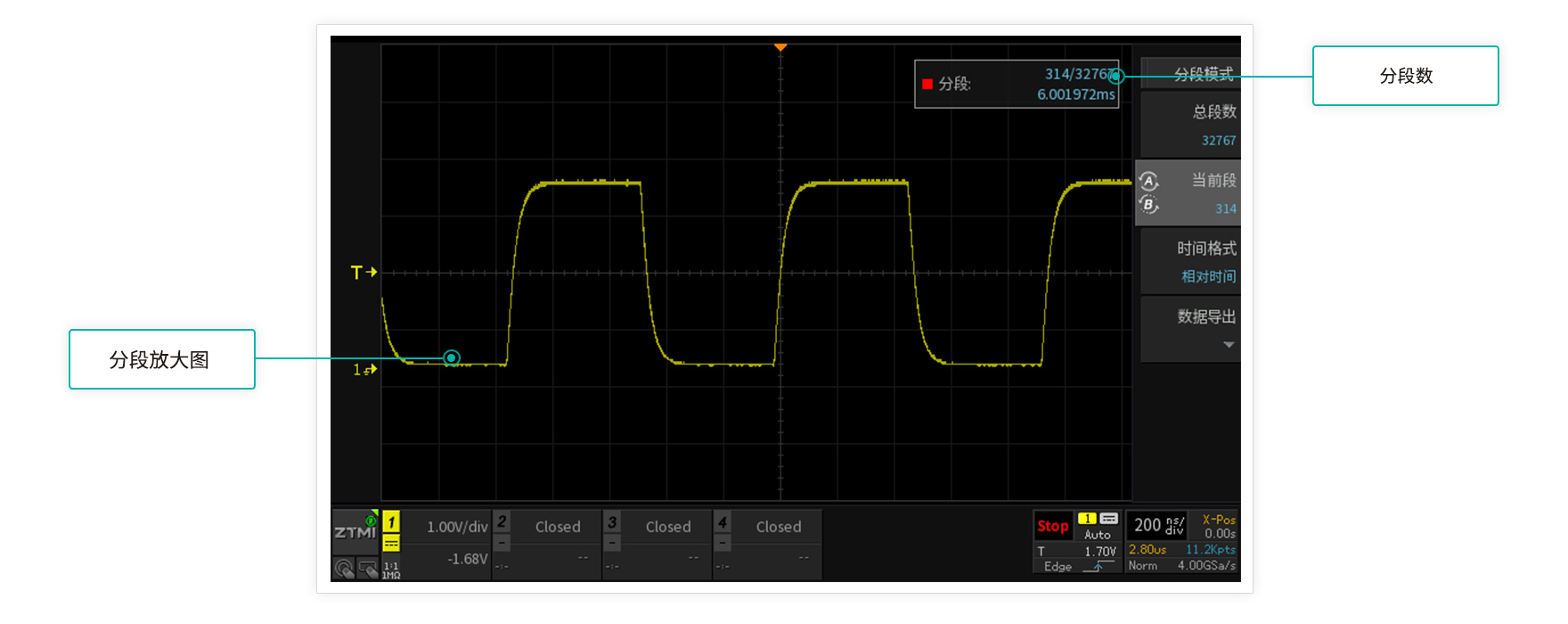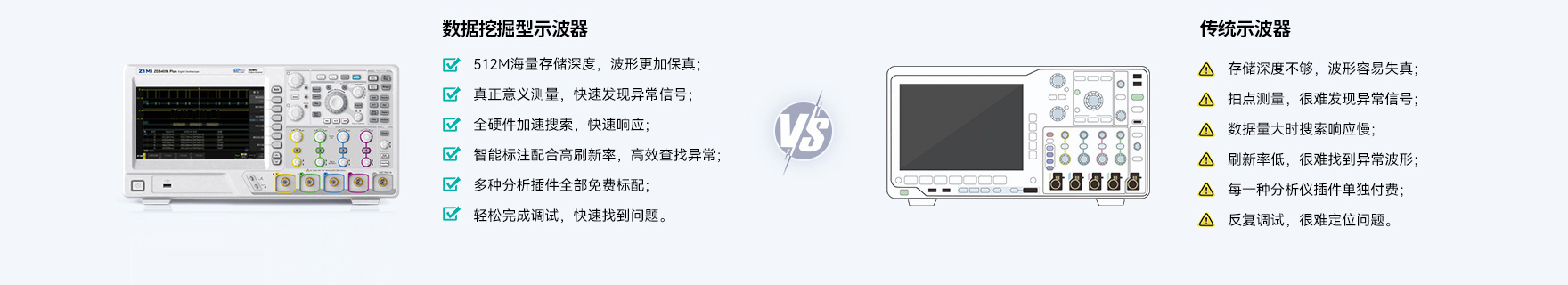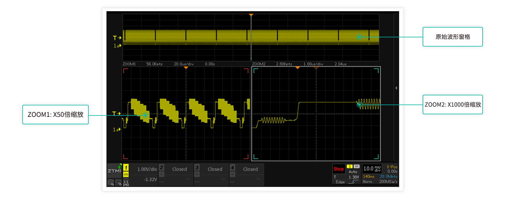 波形刷新率越高,死区时间就越短。ZDS4000系列示波器,标配1M次波形刷新率,配合模板触发,让您最大概率的发现并捕获异常信号。
