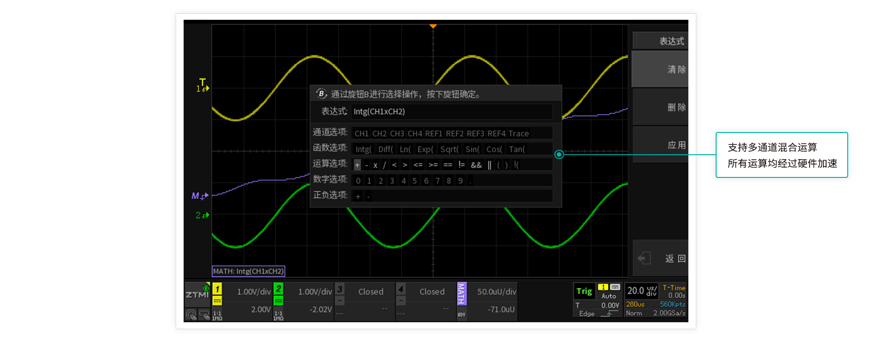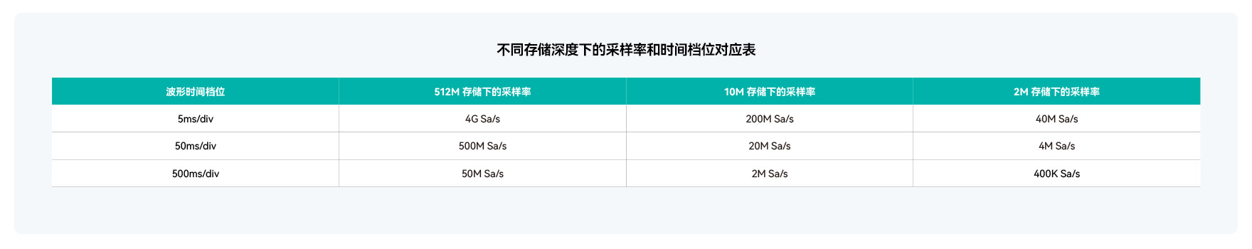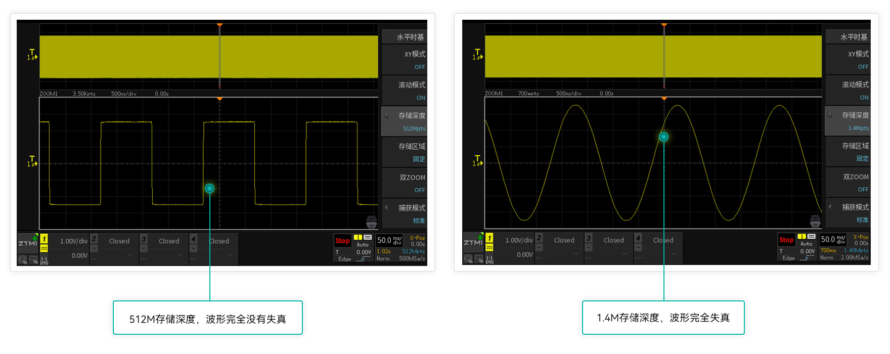 存储深度等于采样率乘以采样时间,512M大存储深度,长时间捕获波形,依然不会出现波形失真。