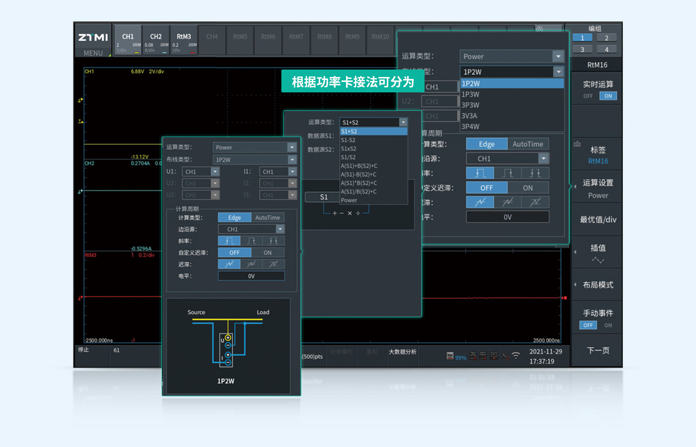 波形运算的实时性可直接体现产品的性能,ZDL6000和ZDL5000在100M采样率下的波形运算速度小于100微秒,非常适用于高速计算场合,如无线充电的功率运算、电感、电容的功耗运算等。