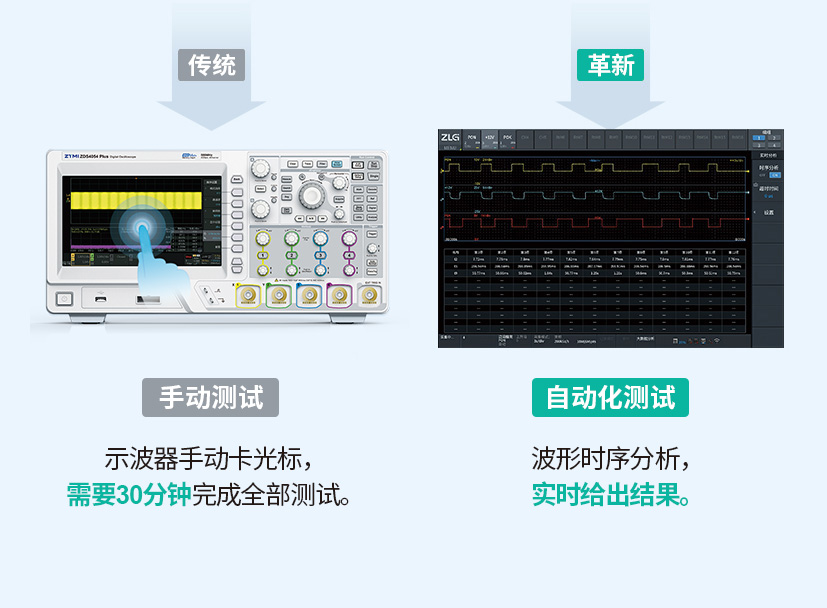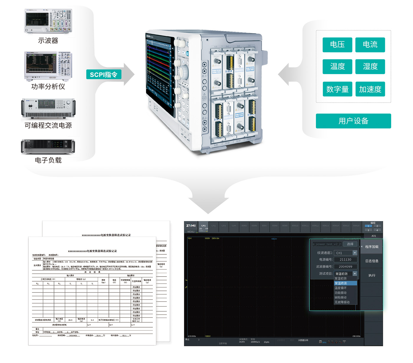 柔性ATE系统集成是ZDL6000示波记录仪最大胆的功能。传统的ATE系统和被测设备绑定,更换被测产品之后,原ATE系统中的设备和上位机软件难以再次复用,柔性ATE系统集成则灵活、多样、复用度高,我们正将一台ZDL6000示波记录仪改造成一套完整的测试系统大脑。
