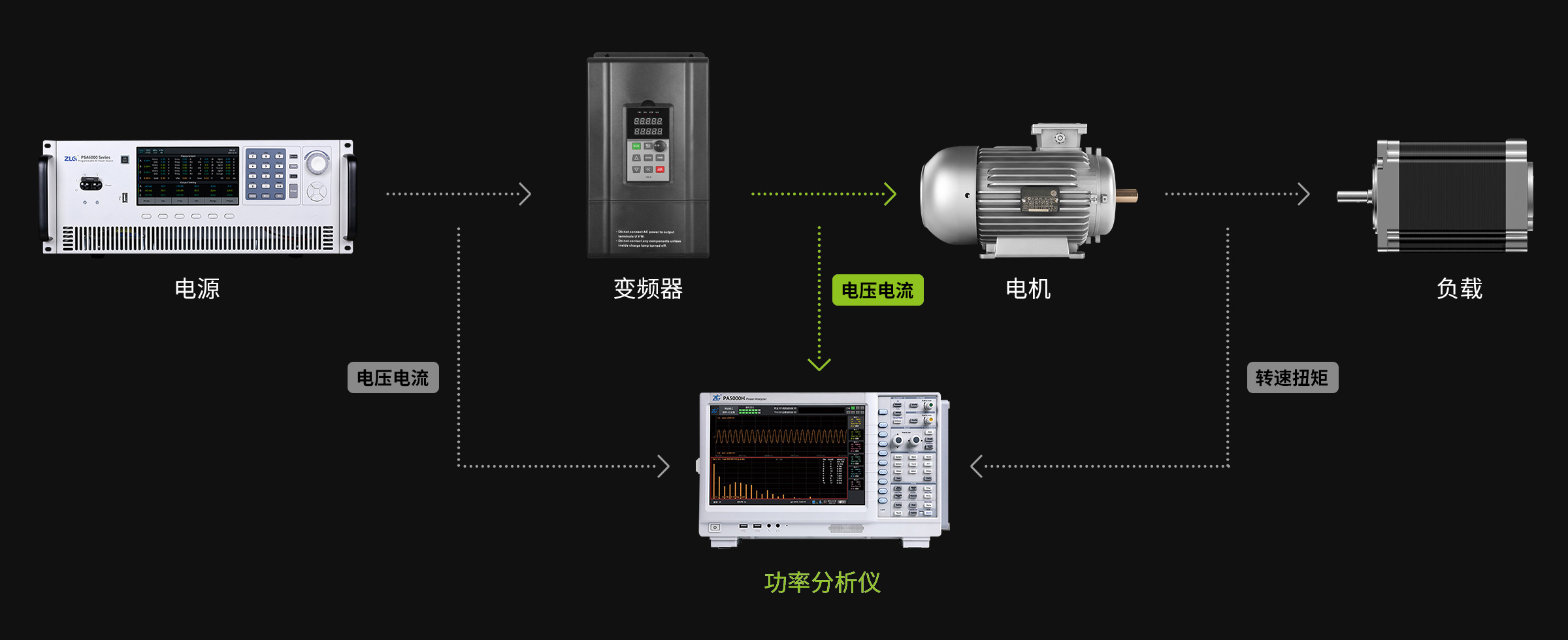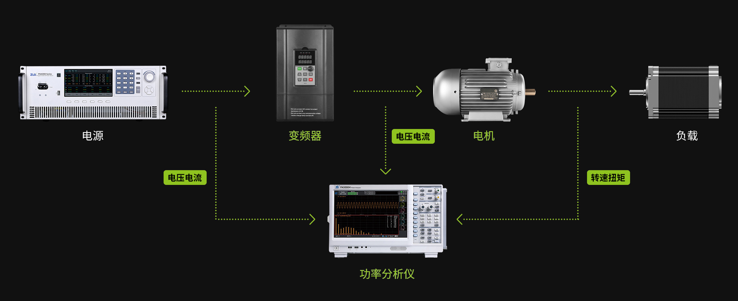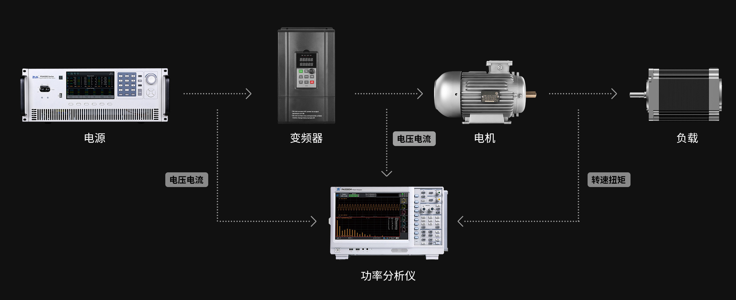 使用功率分析仪进行变频器电功率、电机机械功率的同步效率评估