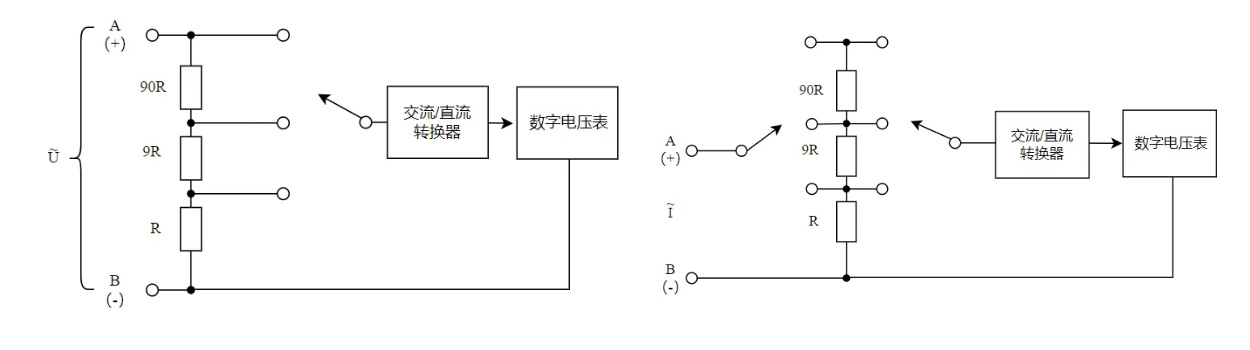 交流电压测量:通过交直流转换器,将交流电压转换为直流电压的方式实现;