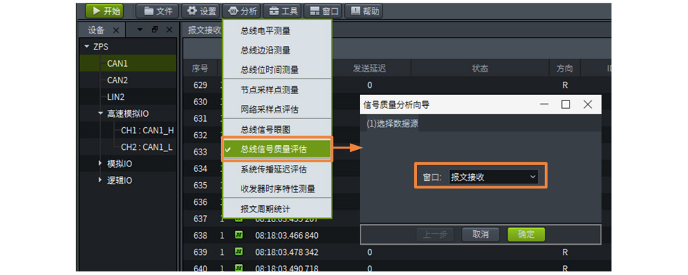 通过ZPS的总线信号质量评估功能可以实现对CAN单节点或网络进行质量评分,其操作步骤如下。