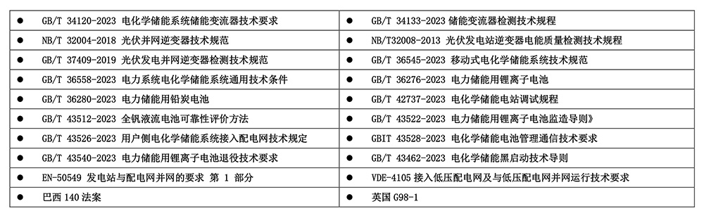 光伏逆变器、储能逆变器、储能PCS等产品测试必须符合多项国内外标准,例如: