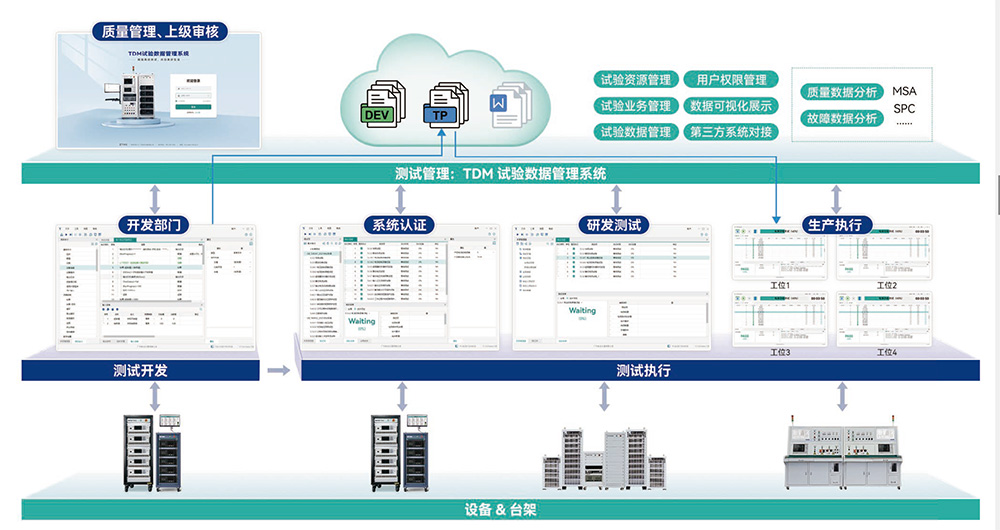 测试设备层:统一管理各类测试仪器,解决多品牌设备兼容问题,简化系统配置。