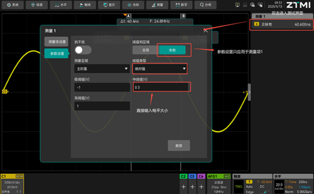 ZUS示波器独立阈值设置功能详解:简化操作流程,提升脉宽测量效率