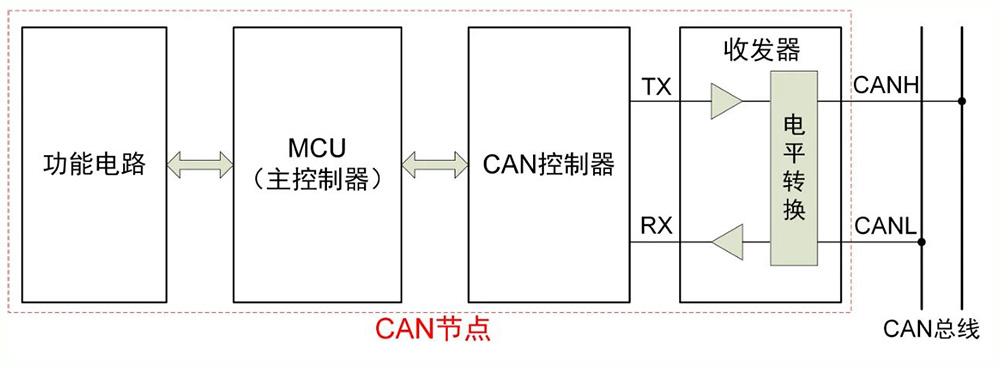 MCU是工作于应用层的器件,其功能由软件和硬件共同实现,MCU运行的程序可由设计者灵活设计,以实现CAN节点的特定功能;