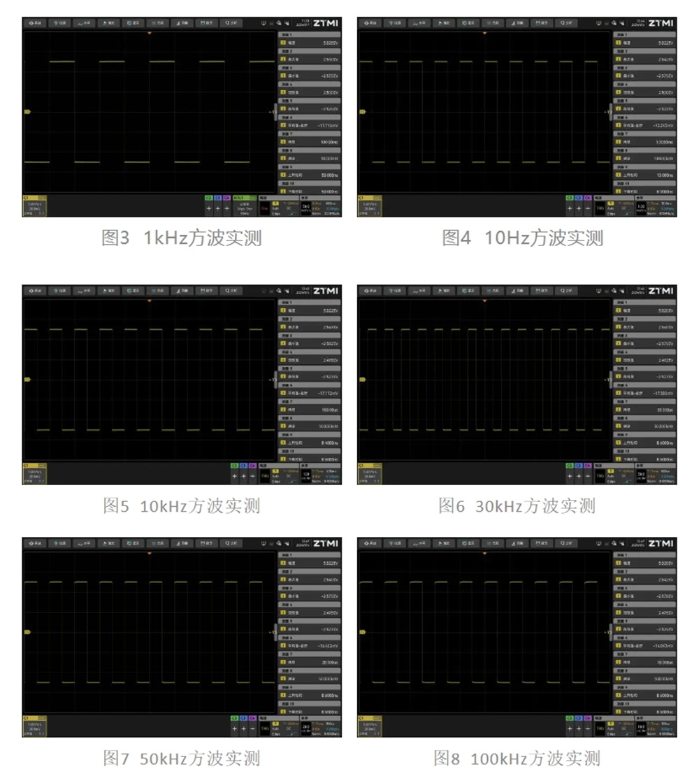 ZUS5000系列示波器通过改进模拟前端电路结构,有效扩展了高精度测量的频率覆盖范围。根据实测数据,在从10Hz低频到100kHz中高频的全频段范围内,该系列示波器保持了优异的一致性,各频点间的测量偏差控制在极小范围内,解决了测量值随被测信号频率改变而发生精度劣化的问题。