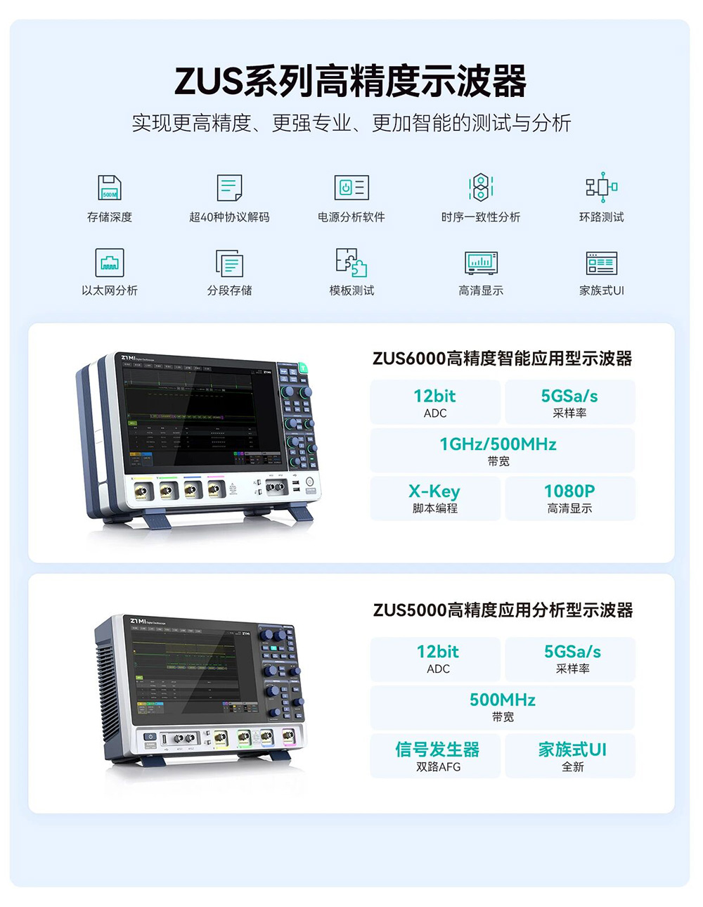 ZUS5000系列12位ADC示波器:从架构到算法实现全频段精准测量