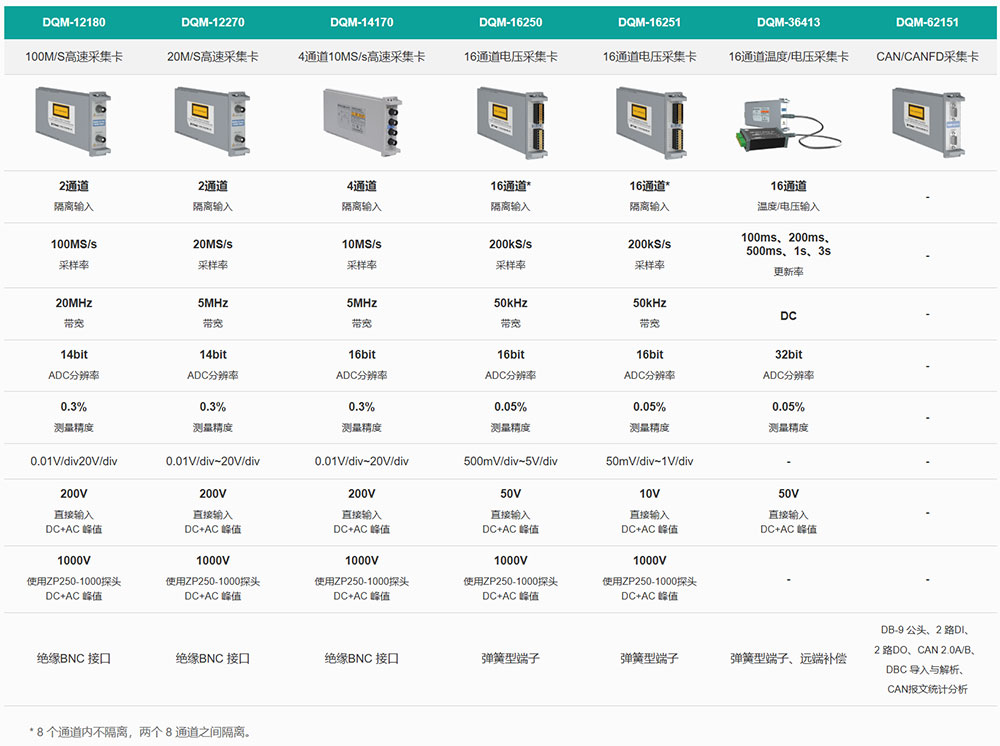 主机提供8个标准化扩展插槽(如图1),用户可以根据实际测试项目需求,从电压、温度、CAN总线等不同类型的采集板卡中自由组合(板卡类型如图2),实现按需配置。