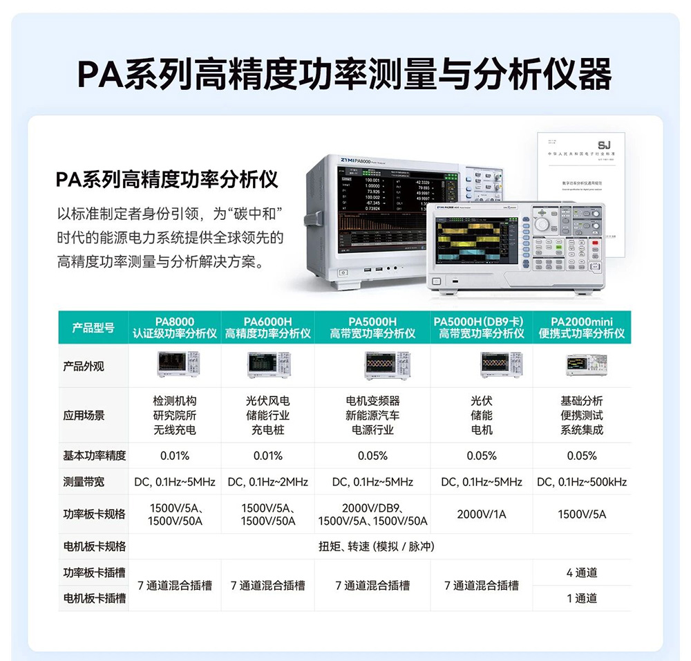 ● 硬件性能:PA8000提供DC至5MHz测量带宽及2MS/s采样率。PA6000H与PA5000H系列针对不同细分需求进行了性能优化。